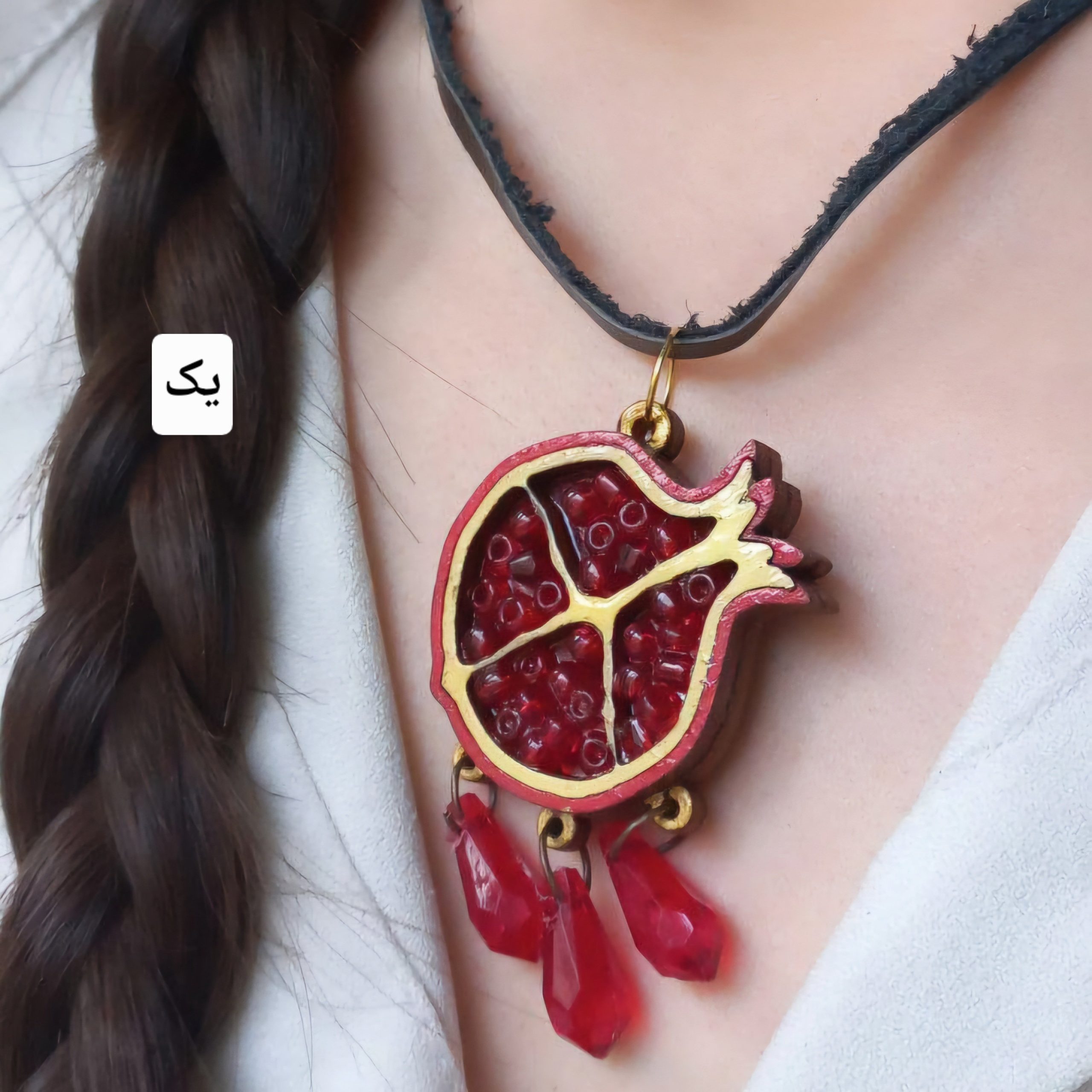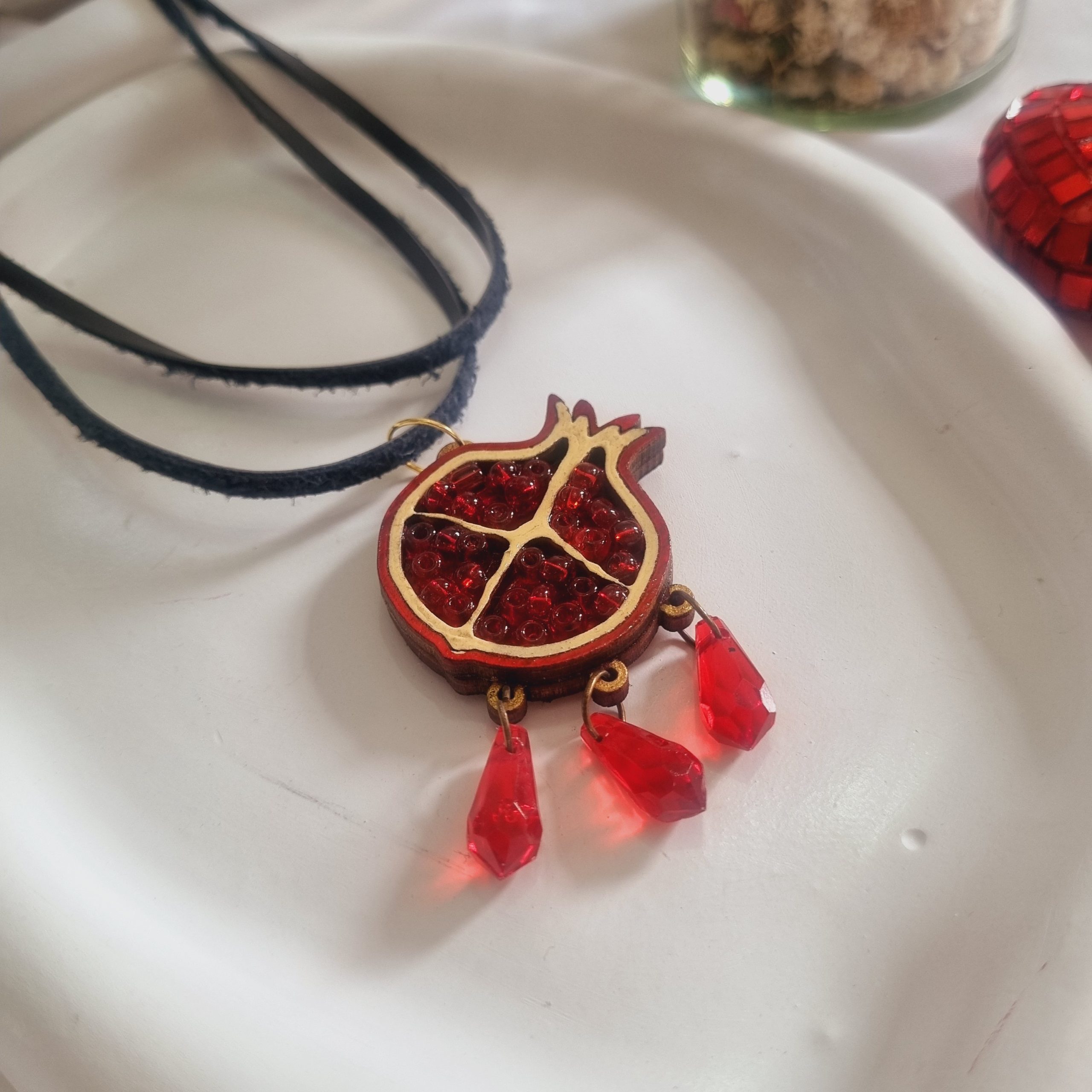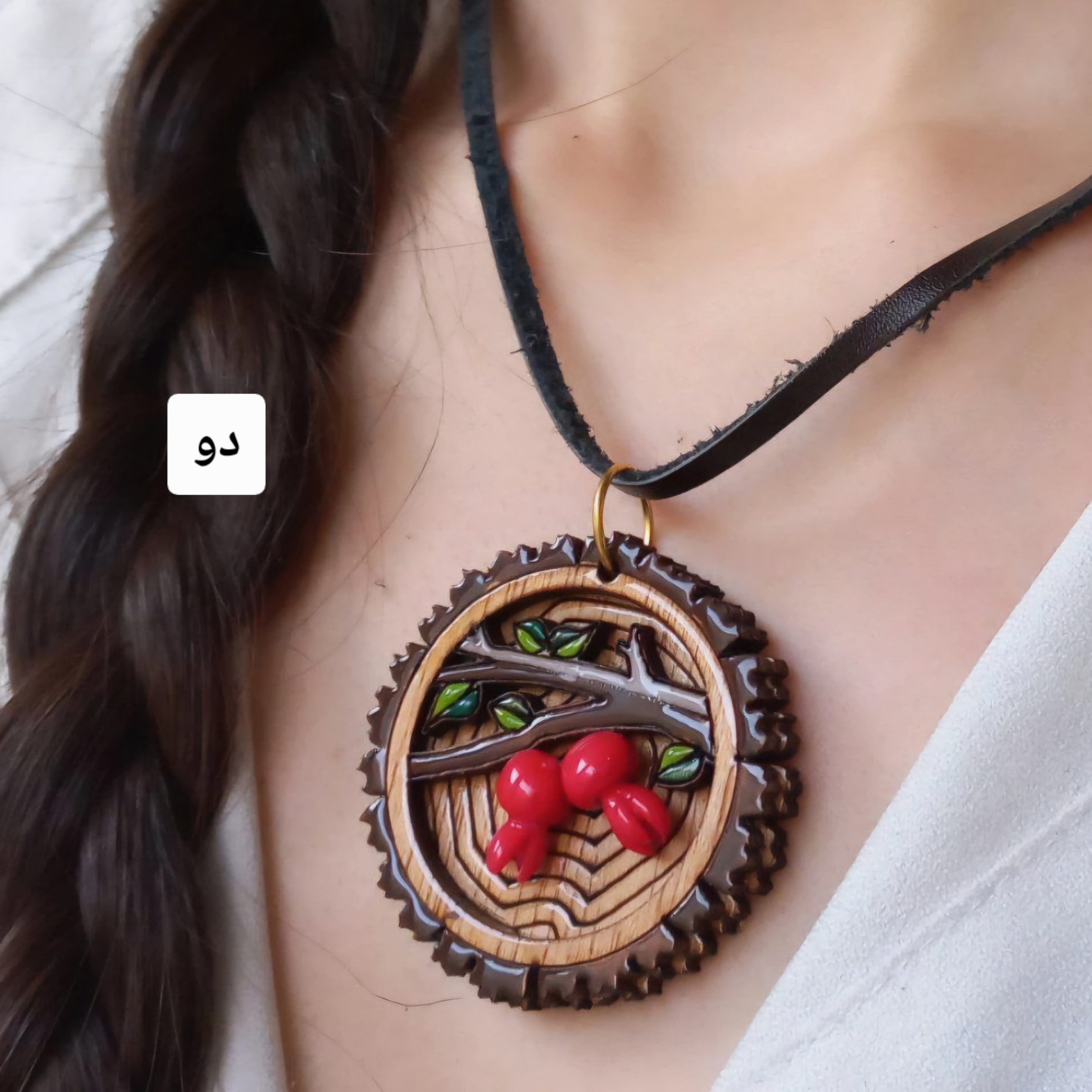 گردنبند چوبی یلدایی با بندچرمی