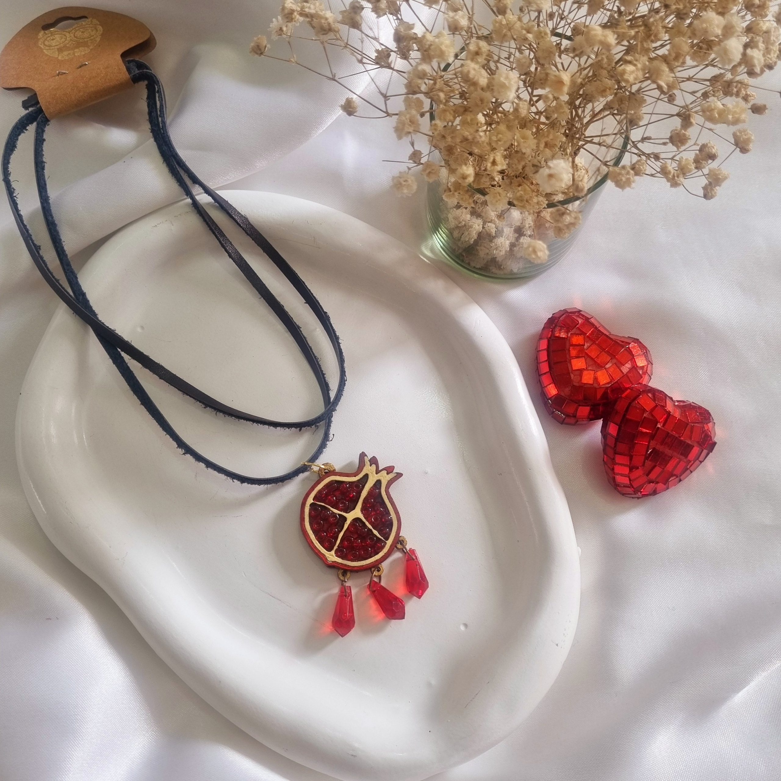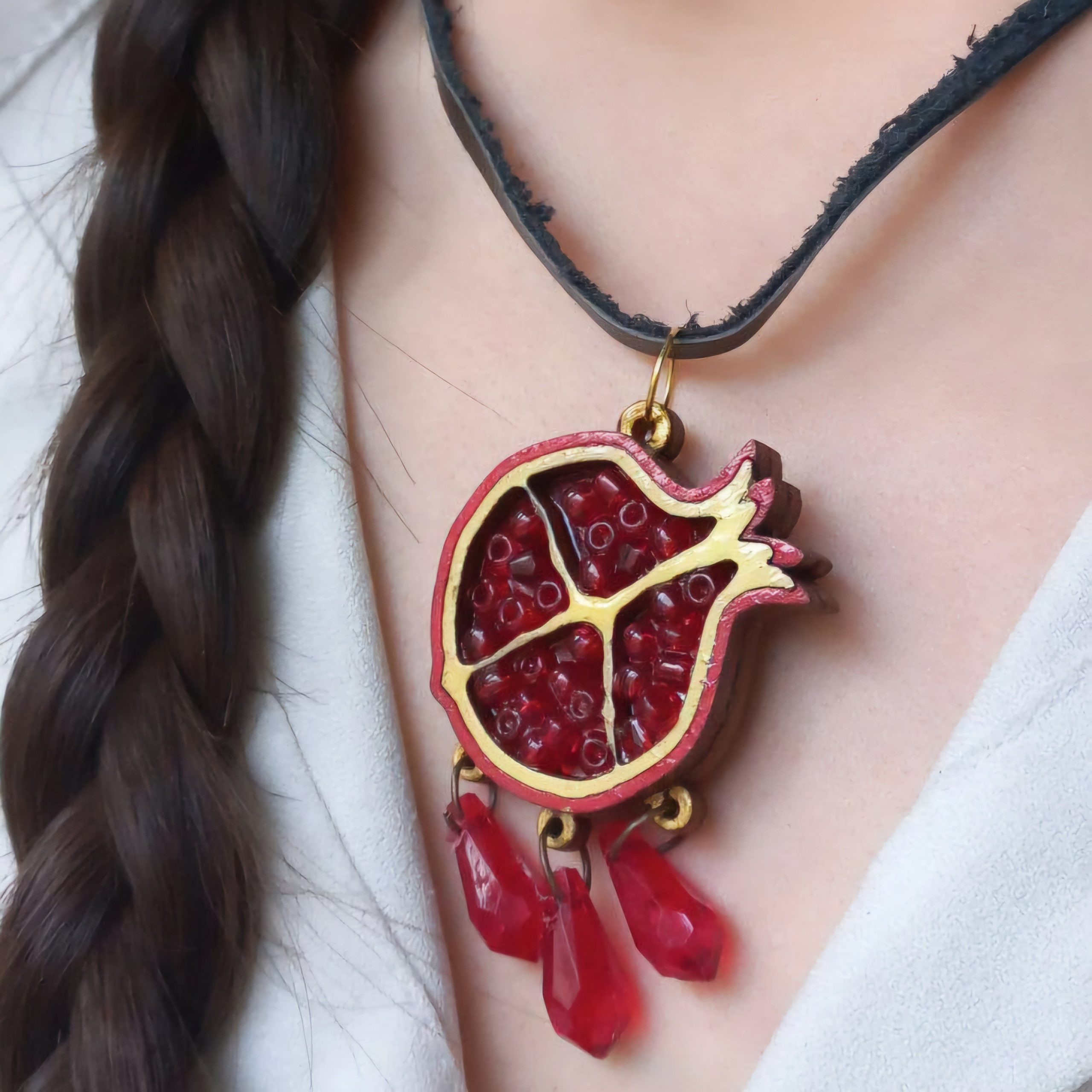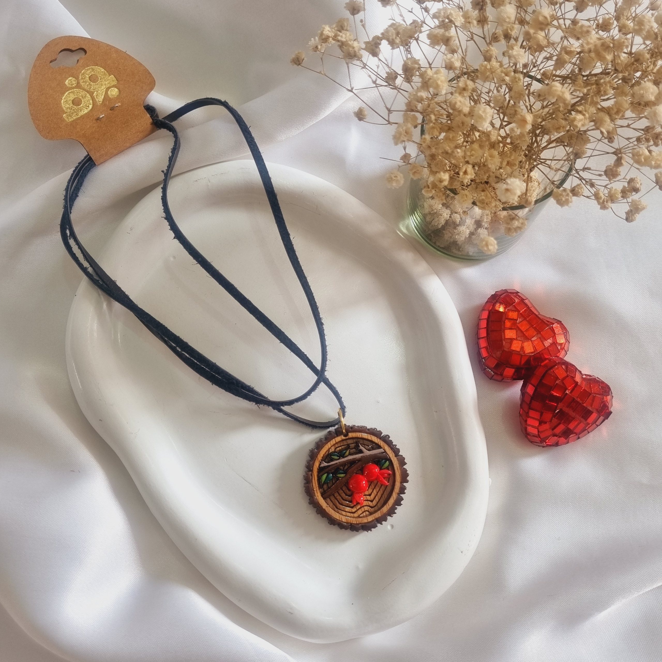 گردنبند چوبی یلدایی با بندچرمی